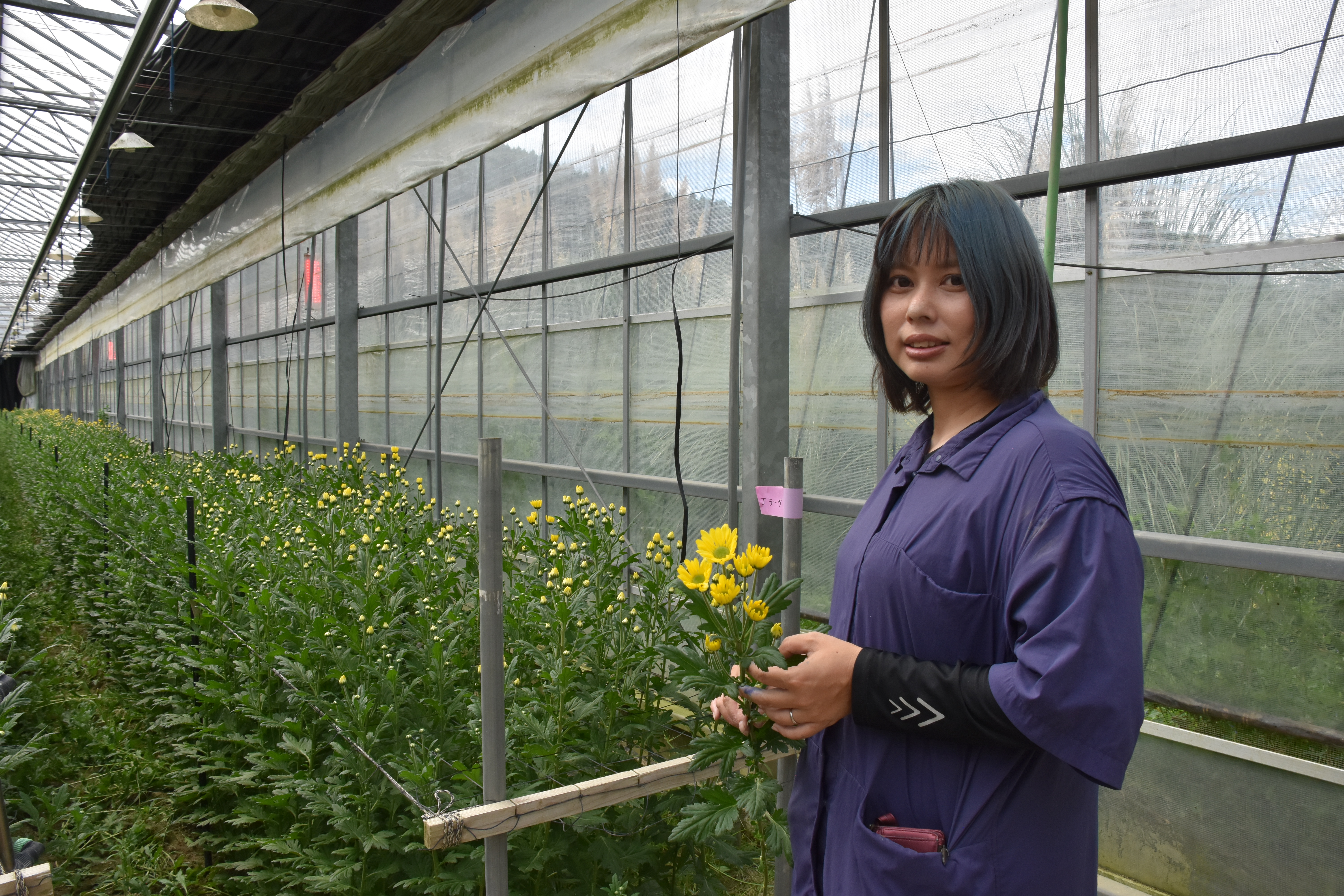 染め菊に魅せられ、「推し活」のアイテムにしようと奮闘する「千紫万紅」の千喜田樹理さん