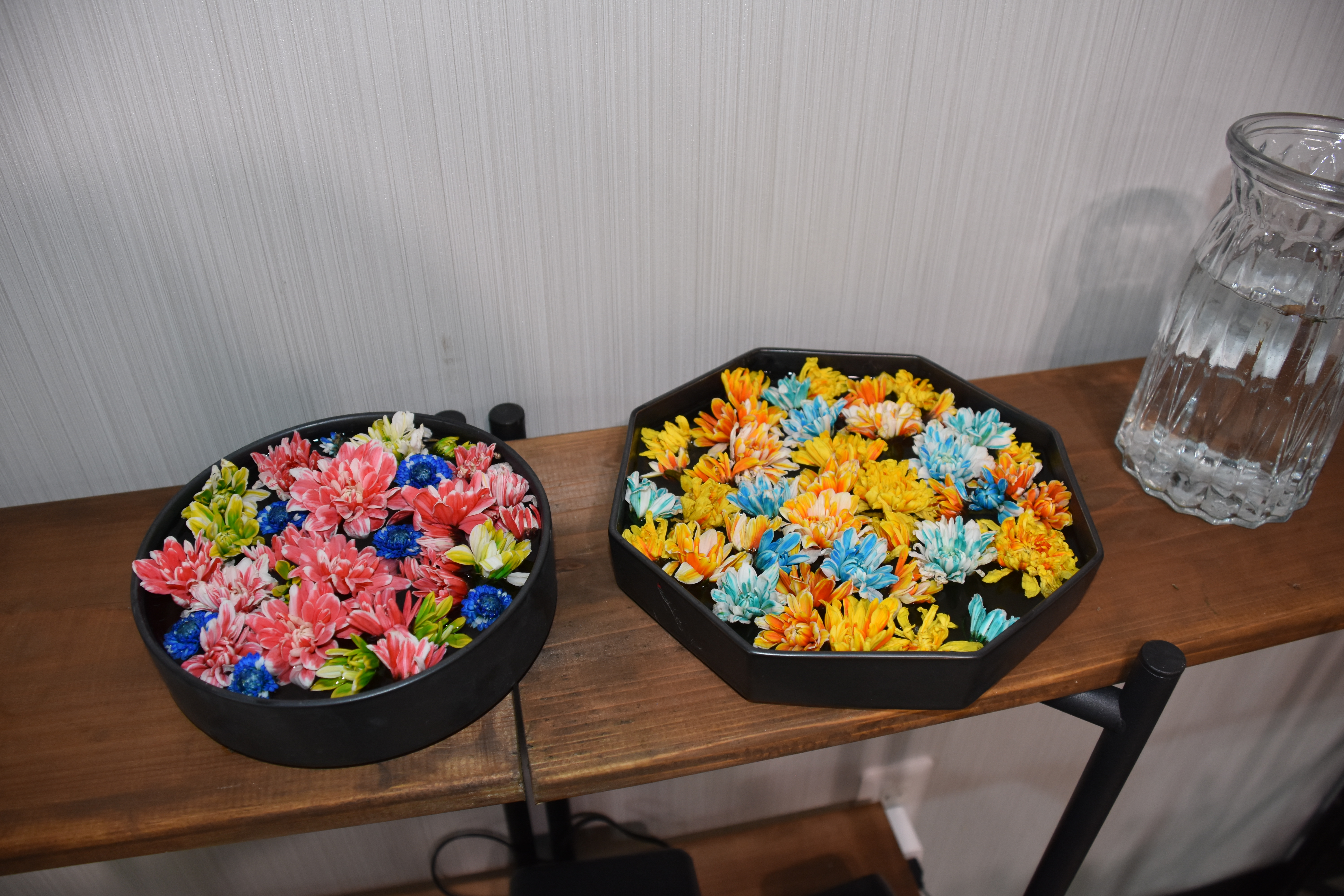 夫と話し合いを重ね、規格外で市場に出せないロスフラワーを使って販売することを決めました。染め菊を専門に生産・販売しているところは全国でも珍しいそうです。